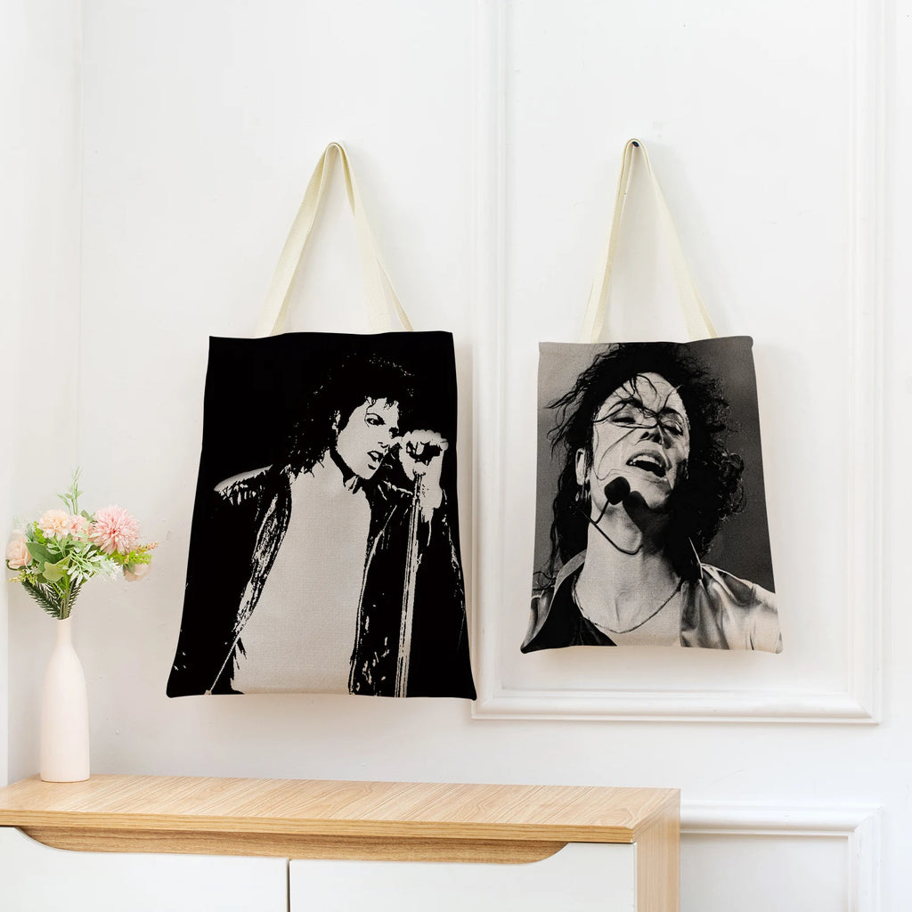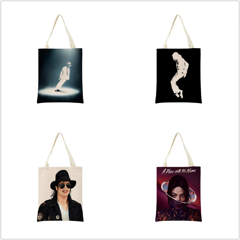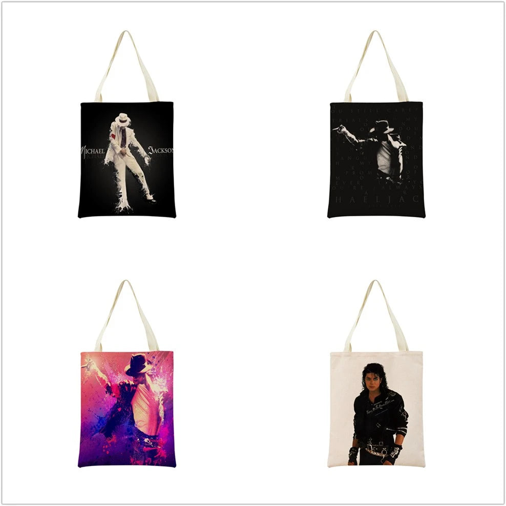 This Michael Jackson themed market shopping bag features a double-sided print design. It is foldable and ideal for everyday use.