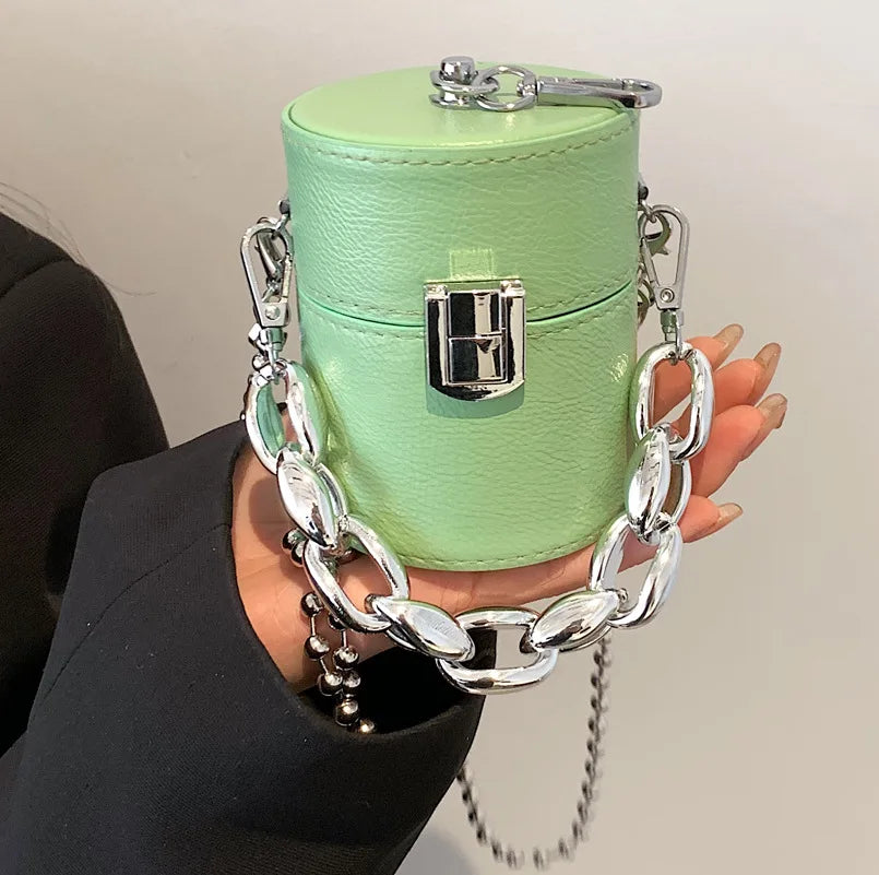 Description:This cute mini lipstick cross body bag is perfect for women who like to carry just the essentials. It features a chain shoulder strap and can also be used as a coin purse.Features: Compact cylindrical design Ideal for carrying lipstick and other small essentials Comes with a chain shoulder strap...