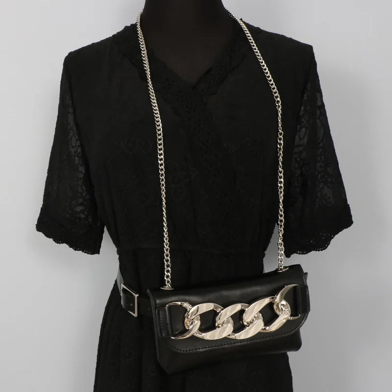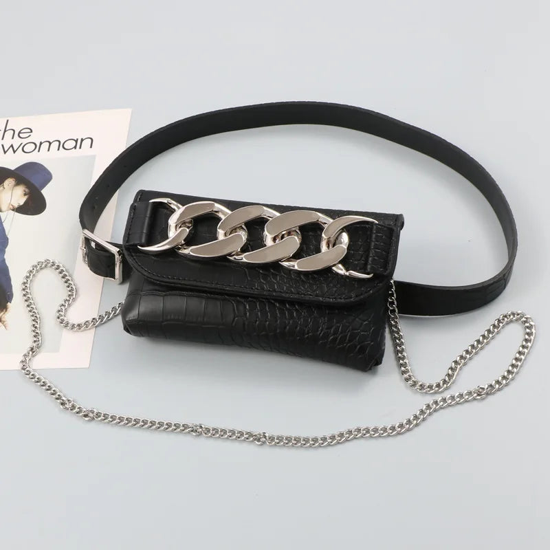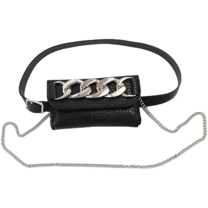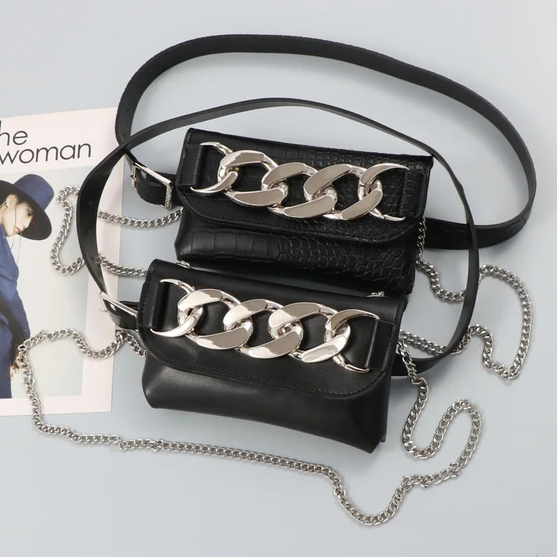 Mini Phone Waist Pack Women Chain Decorated Fanny Pack PU Leather Belt