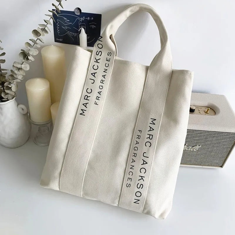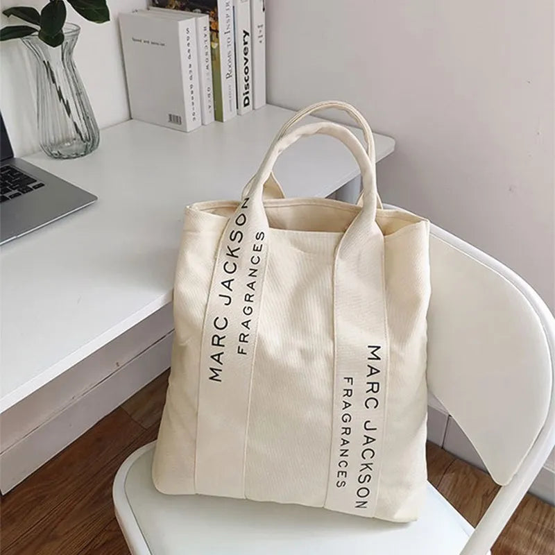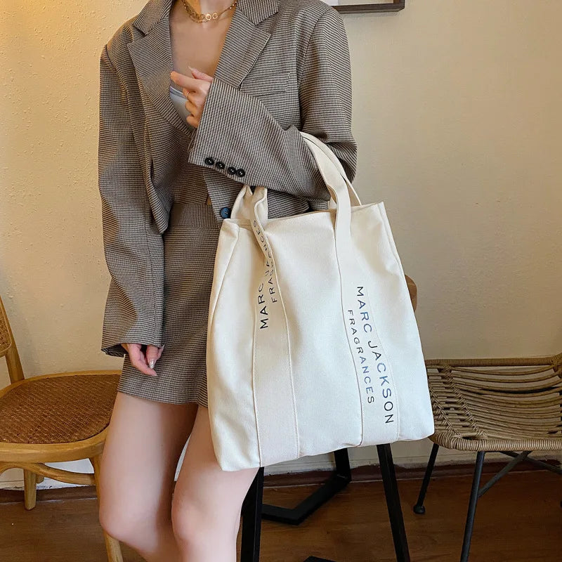 Minimalist Letter Shoulder Tote Bag Large Canvas Reusable Shopping Bag
