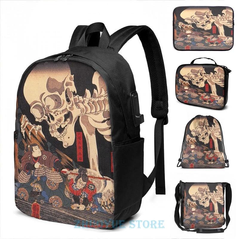 Mitsukuni Skeleton Spectre USB Charge Backpack Men Women Travel Laptop Bag