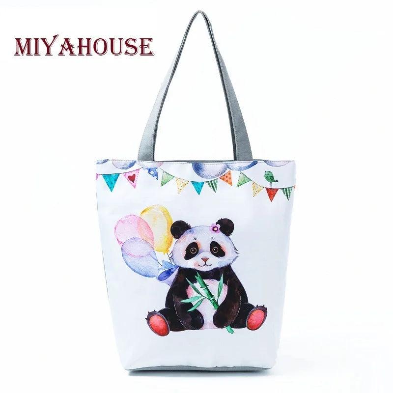 Miyahouse Panda Canvas Tote Handbags High Capacity Women Shopping Bag