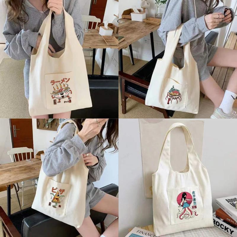 Monster Canvas Vest Bag Women's Shoulder Shopping Bags Eco Reusable Grocery Tote