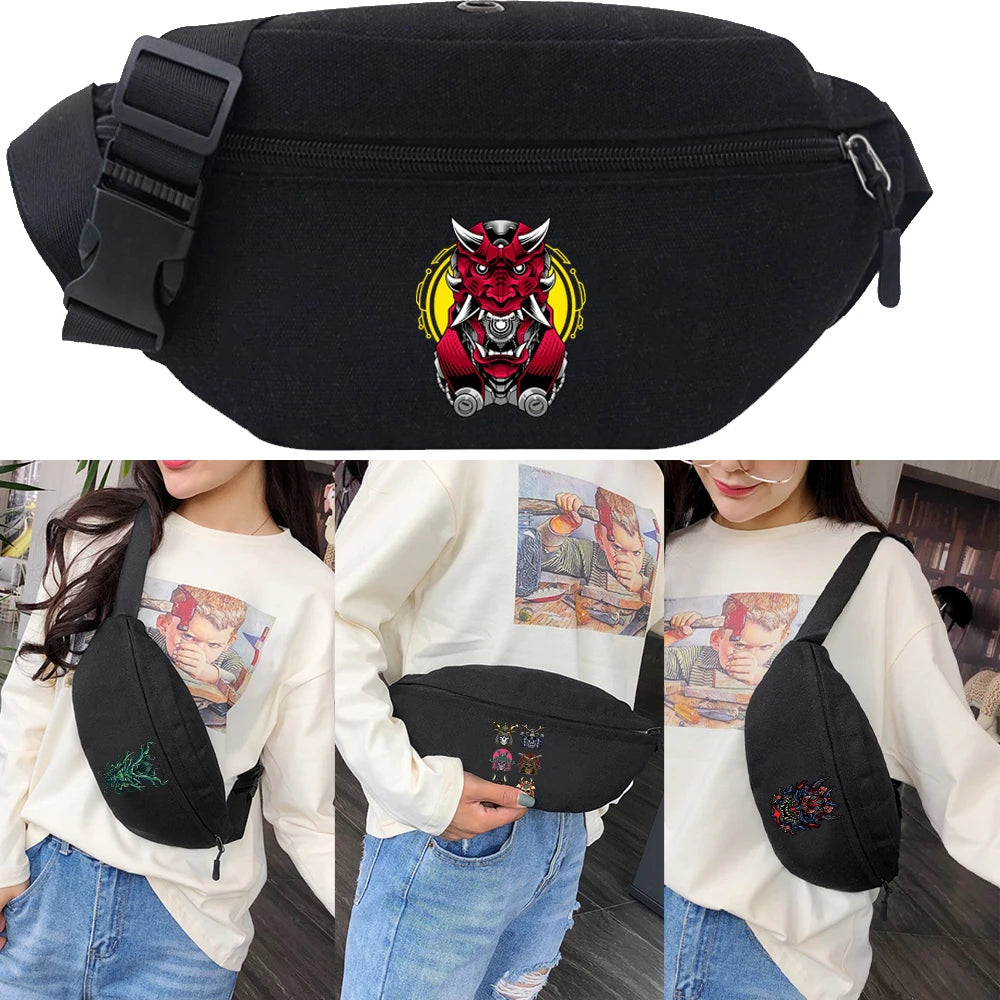 Monster Print Outdoor Sports Bag Canvas Waist Bag Crossbody Banana Bag