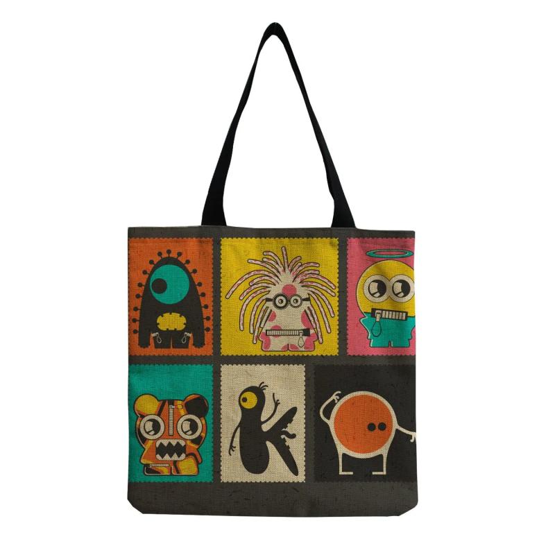 Monster Printed Tote Linen Travel Storage Handbag Women Shopping Bag