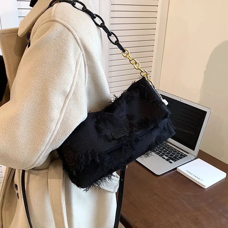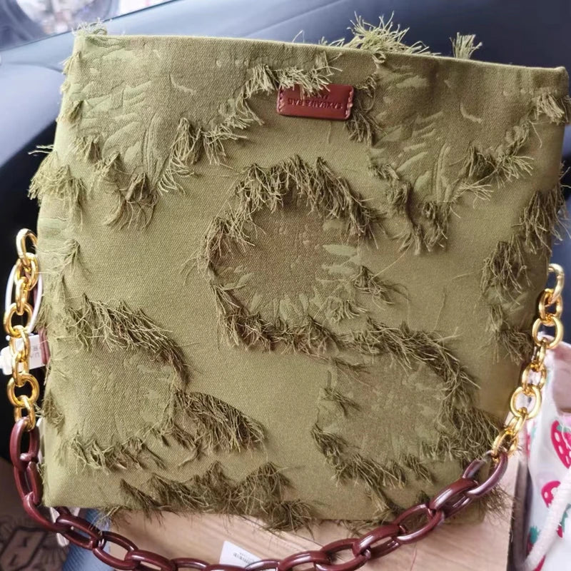 Moods Shoulder Bags Canvas Embroidery Acrylic Chain Crossbody