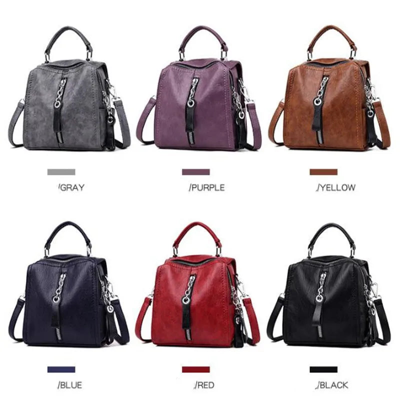 This stylish PU leather backpack is perfect for everyday use, featuring multiple compartments and a crossbody bag design.
