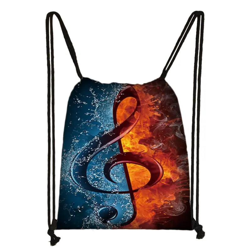 Musical Notes Drawstring Bag Women Travel Bag Teenager Boys Girls Storage Bag