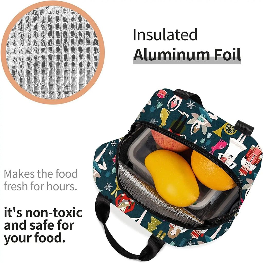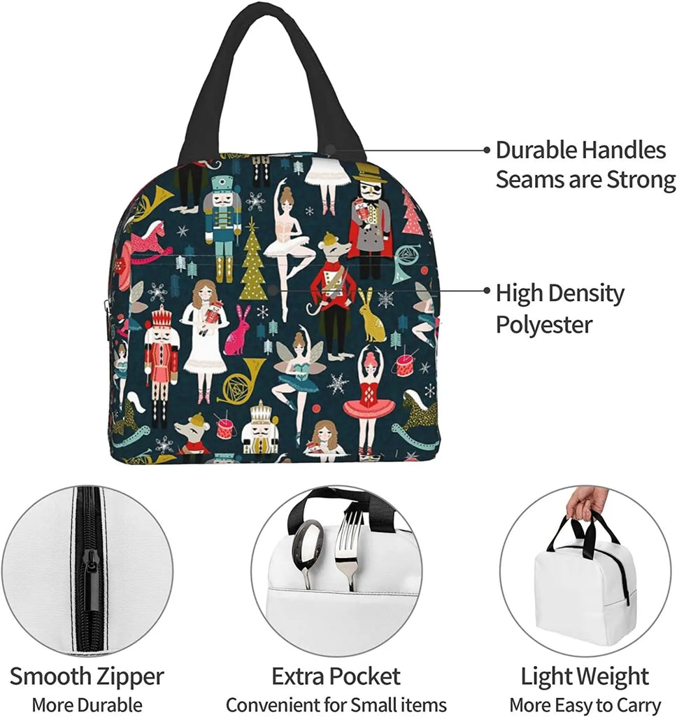 Nutcracker Ballet Xmas Dance Lunch Bag Portable Reusable Insulated Box