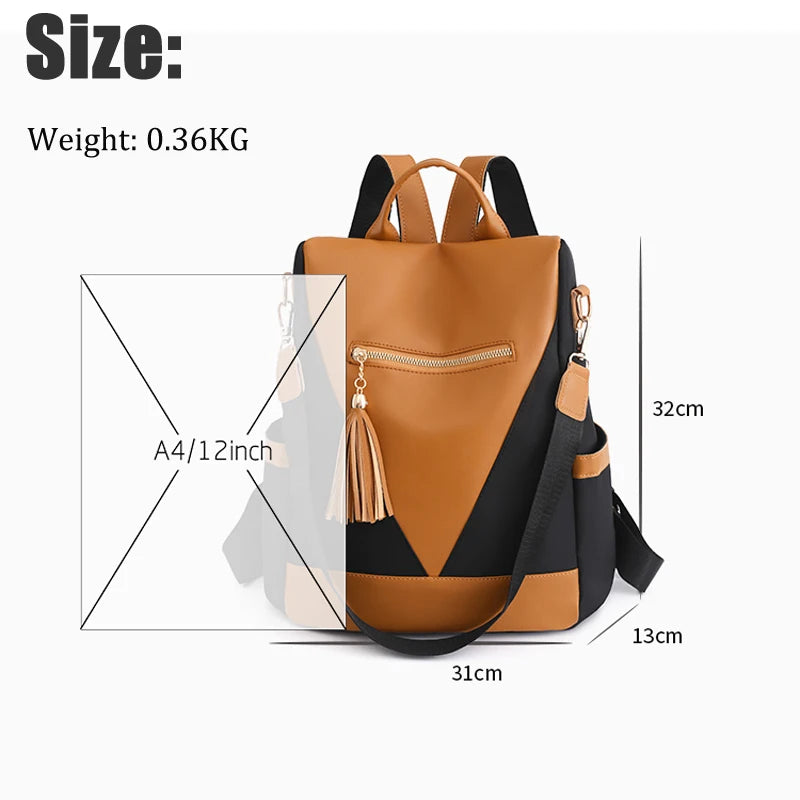High-quality nylon backpack designed for women with a large capacity, ideal for travel and school. Features a stylish patchwork design.