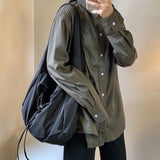 Nylon Bucket Shoulder Bag Solid Zipper Tote Handbag