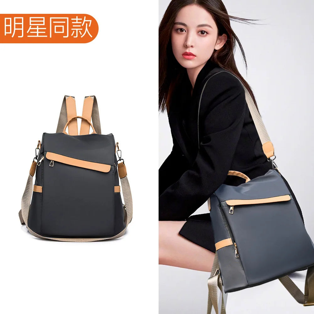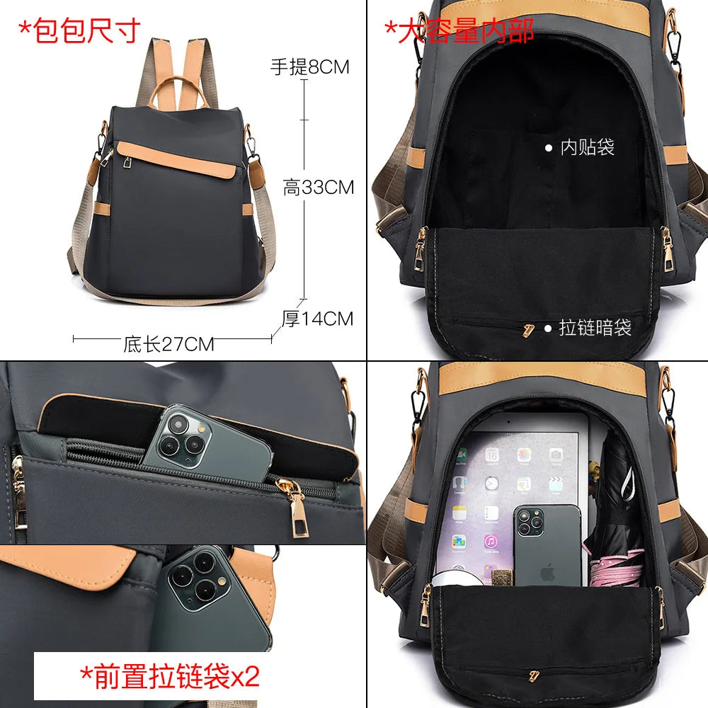 This women's backpack is made of durable nylon cloth, ideal for travel and daily use.