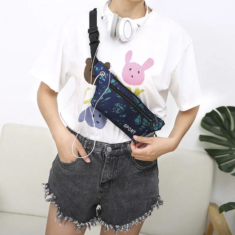 Nylon Fanny Pack Waist Banana Bag with Earphone Hole