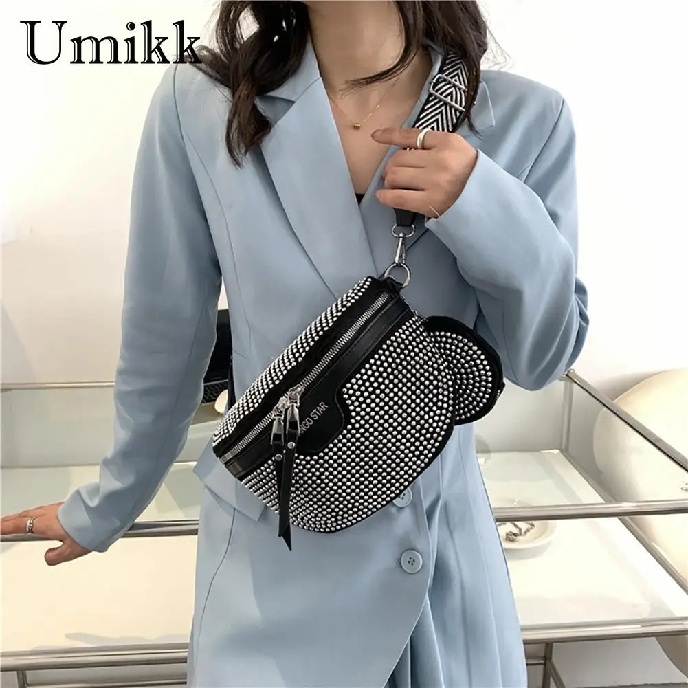 This women's waist bag is made of durable nylon material, featuring a semicircle shape and a convenient zipper closure. It can be worn as a crossbody or chest pack, making it perfect for daily use.