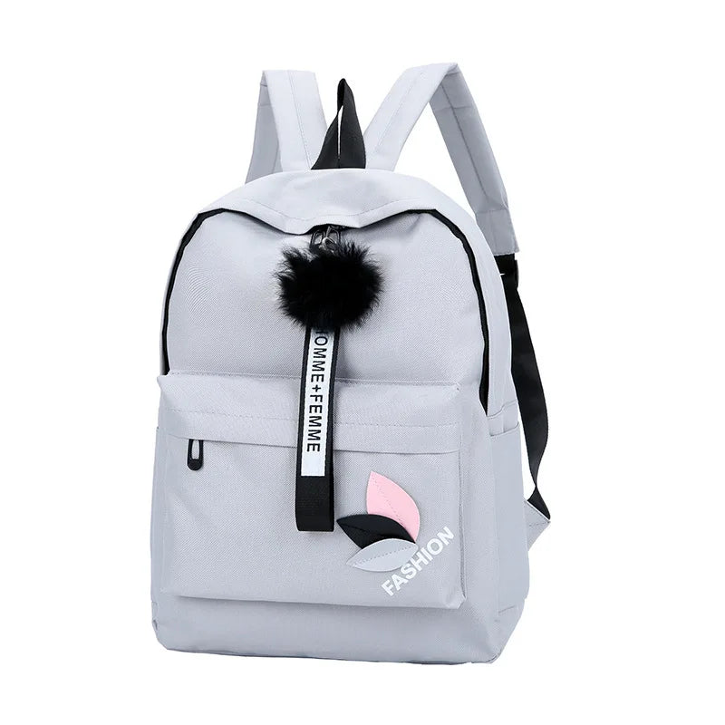 This nylon backpack is perfect for girls and college students. It features a solid printing design that adds a trendy touch. The backpack is durable and comfortable to carry, making it ideal for school or everyday use.