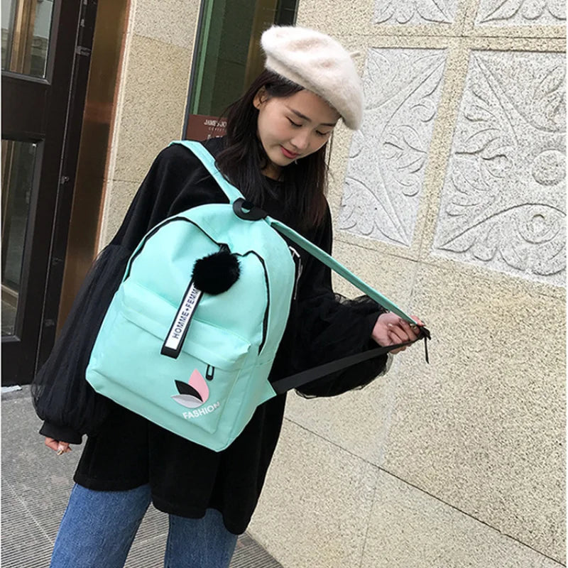 Nylon Printing Solid Backpack Girl School Bags Teen College Wind Women SchoolBag