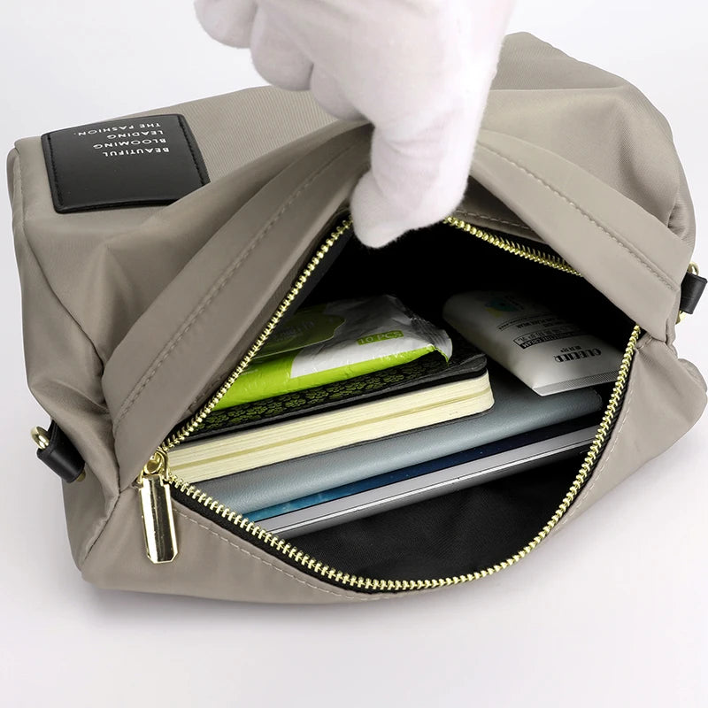 This shoulder bag is made of strong and durable nylon fabric with a large capacity compartment. It is designed to be anti-theft and perfect for travel. The bag is a famous women's handbag.