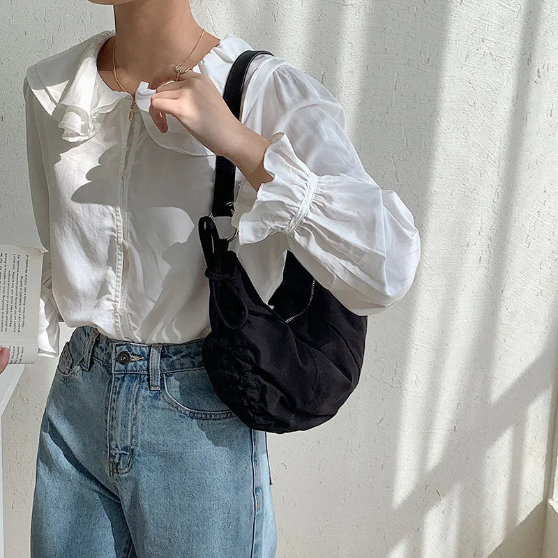 • Casual nylon pleated shoulder bag