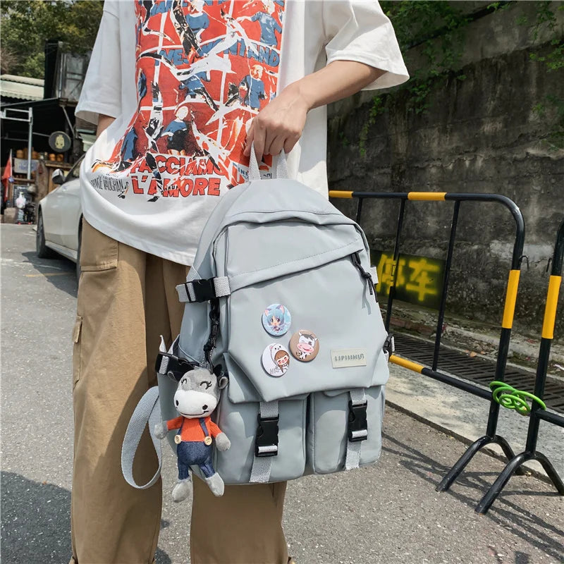 Description:This lovely nylon backpack is perfect for student school use, travel, or as a rucksack. It's waterproof and features a secure buckle closure.Features: Made of durable nylon material Waterproof design for protection Secure buckle closure for safety Ideal for student school bags or travel rucksack Perfect for teenage girls This...