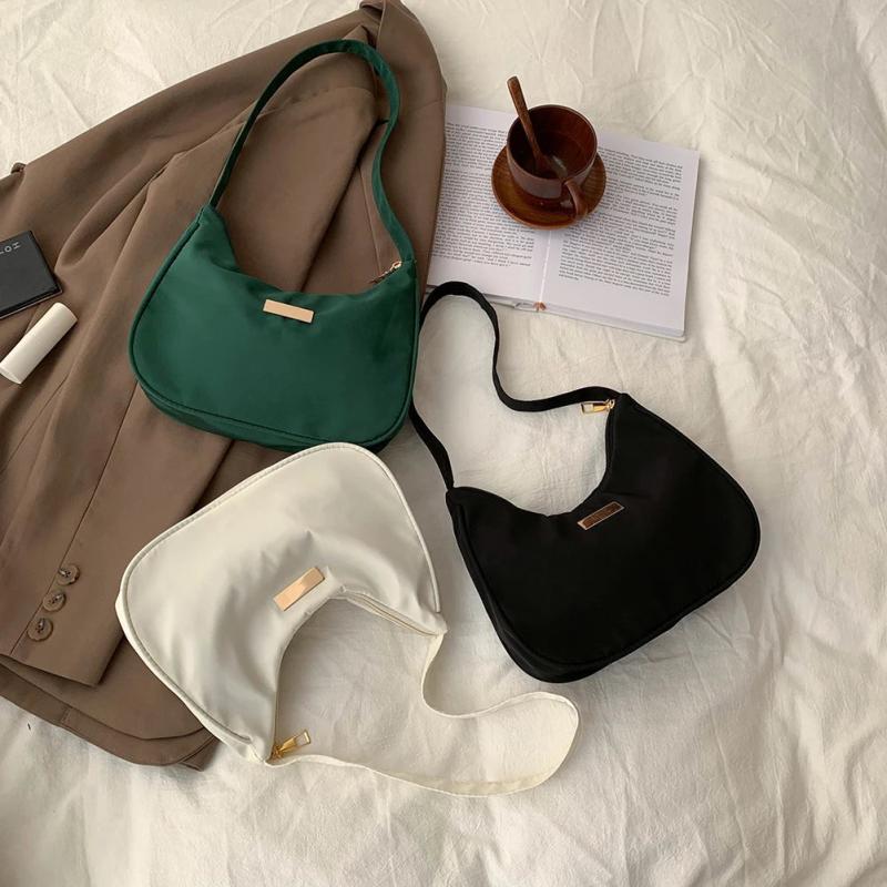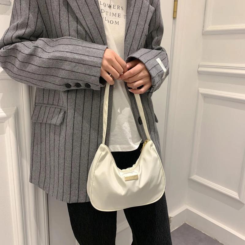 Nylon Solid Shoulder Bag Zipper Small Crescent Messenger Bag Handbags