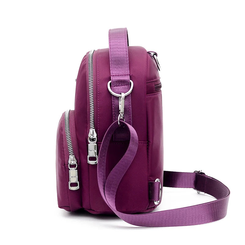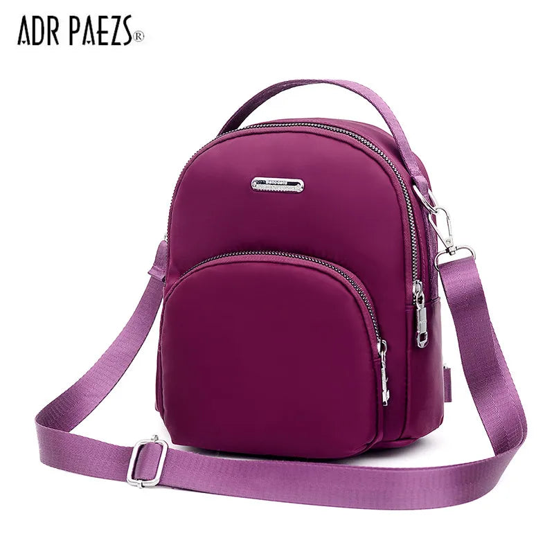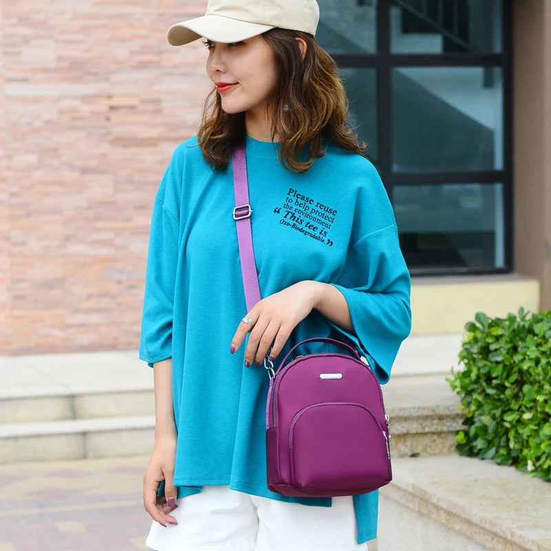 This nylon women's backpack is designed with a soft touch, making it perfect for everyday use. It is a multi-functional bag that can be worn as a backpack or a shoulder bag. The compact size makes it ideal for women on the go.