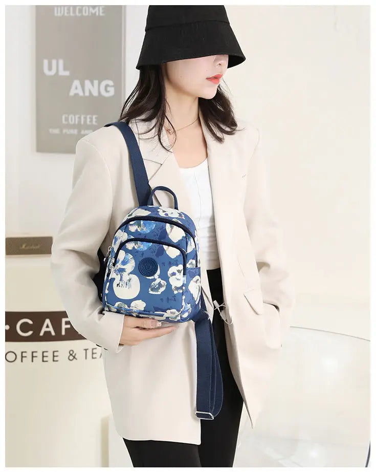 This nylon women backpack is perfect for school, travel, and outdoor activities. It is waterproof and features a mini size for convenience.