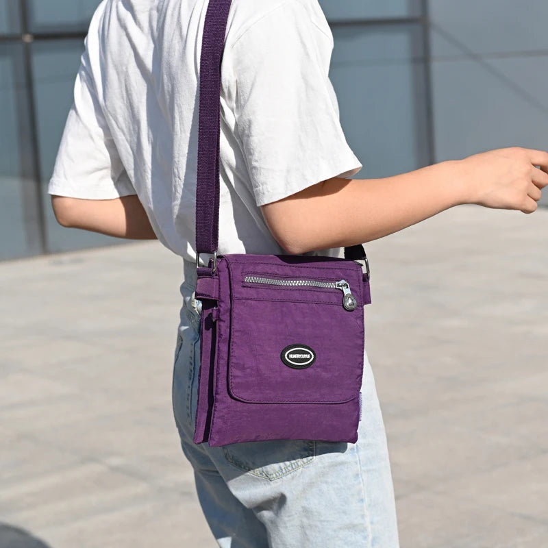 Stay organized and stylish with this nylon messenger bag that features a small purse design. It's waterproof and perfect for everyday use.