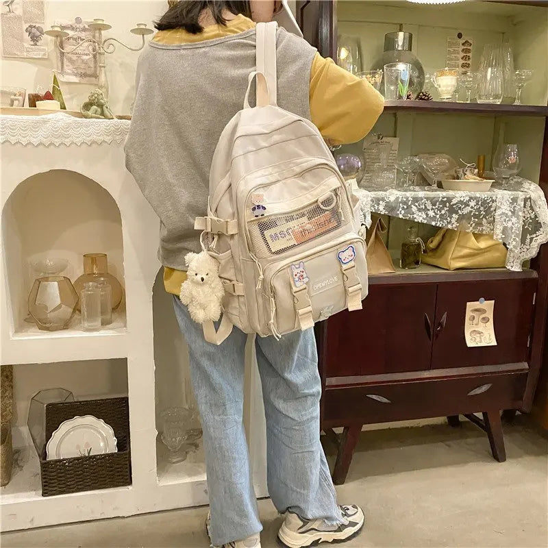 This nylon women's backpack is made of waterproof fabric, perfect for school, teens, and girls.