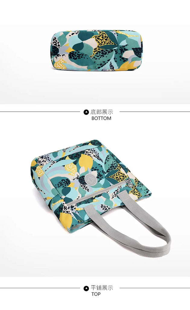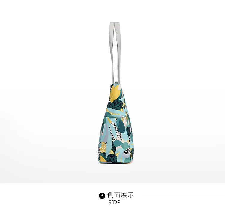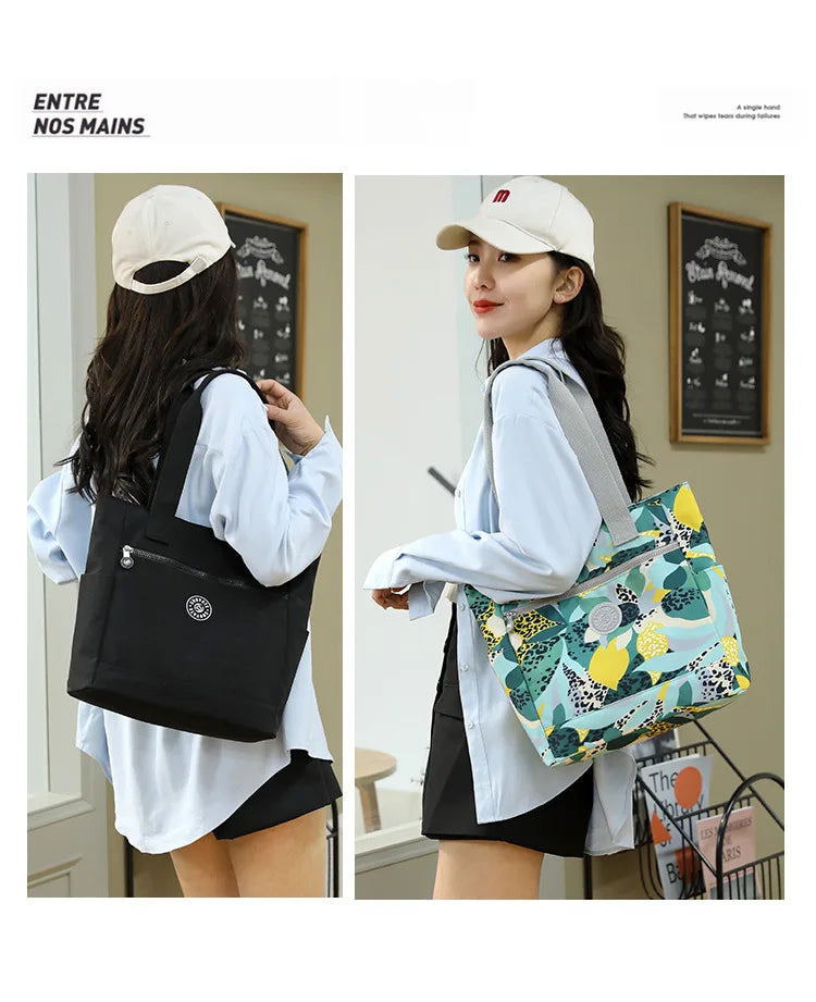 This women's tote bag is made of durable nylon and canvas, perfect for daily use. It features a stylish design and offers convenient storage.