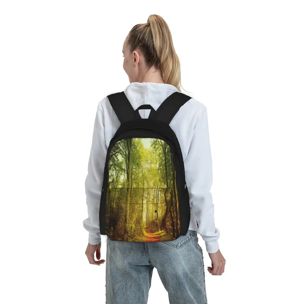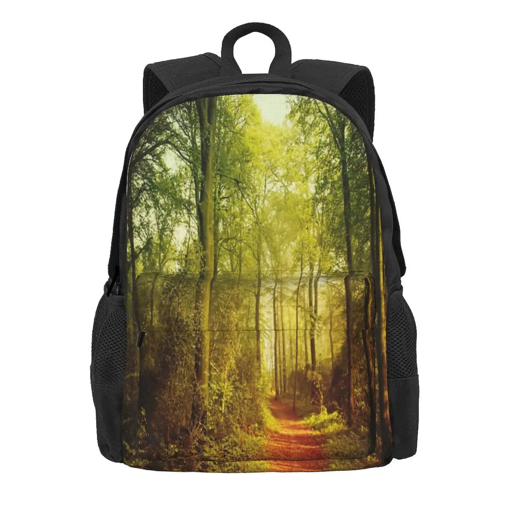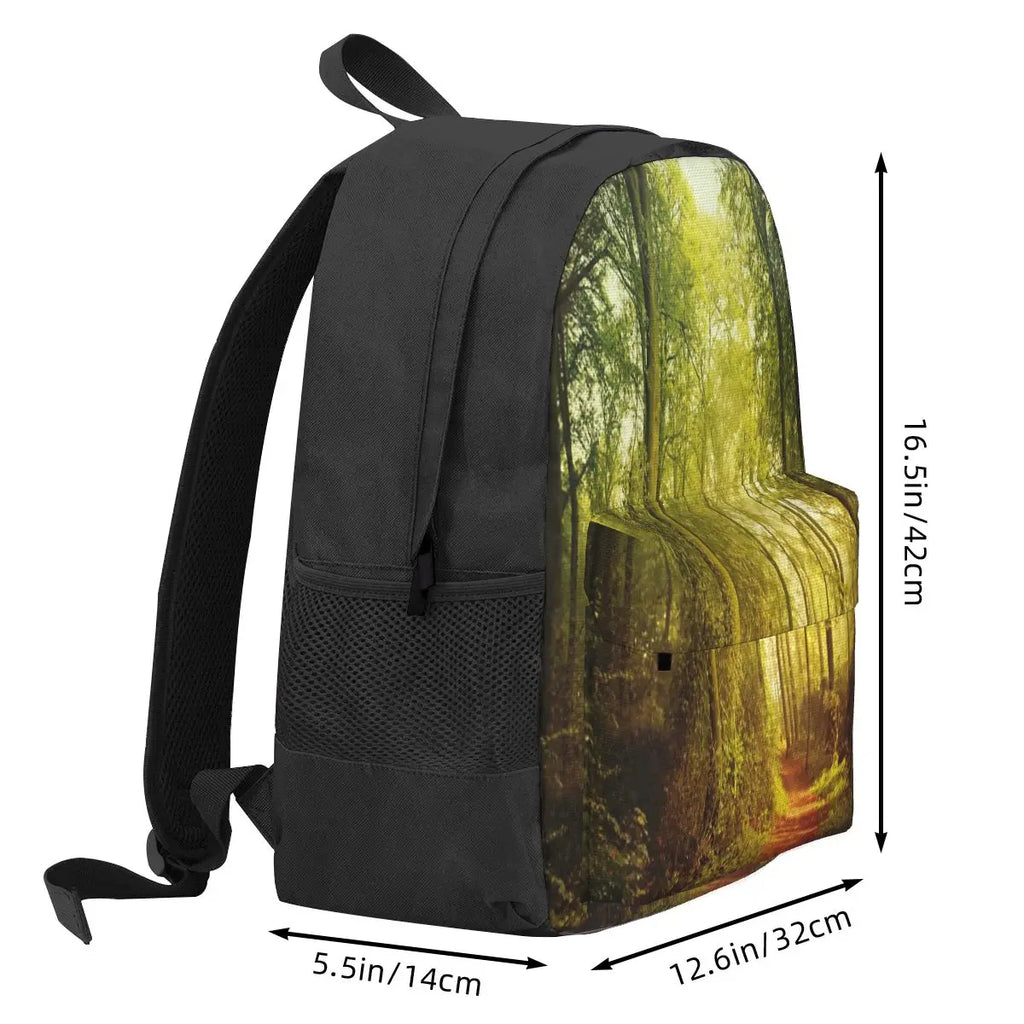 This versatile backpack is suitable for both men and women. It features a stylish October forest print design that adds a touch of nature to your travels or daily activities.