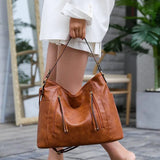 Oil Wax Leather Handbags with Purse Pocket - Women's Messenger Bag