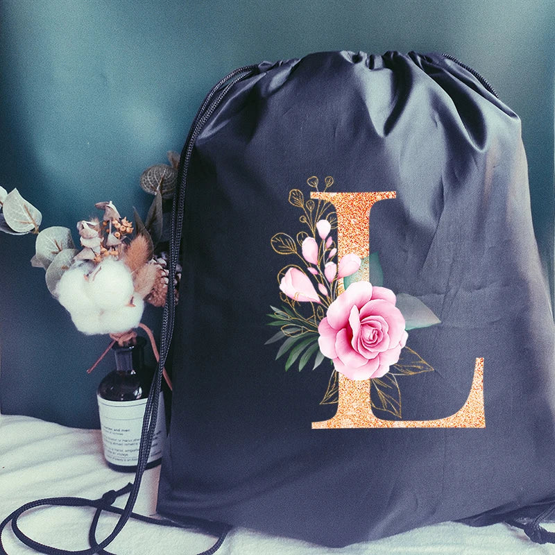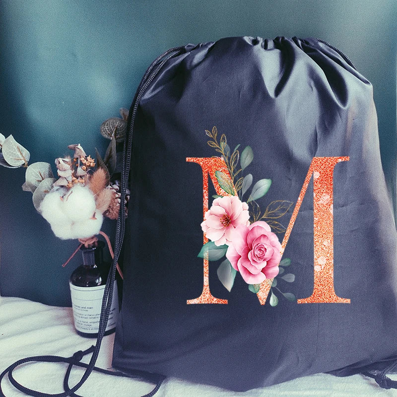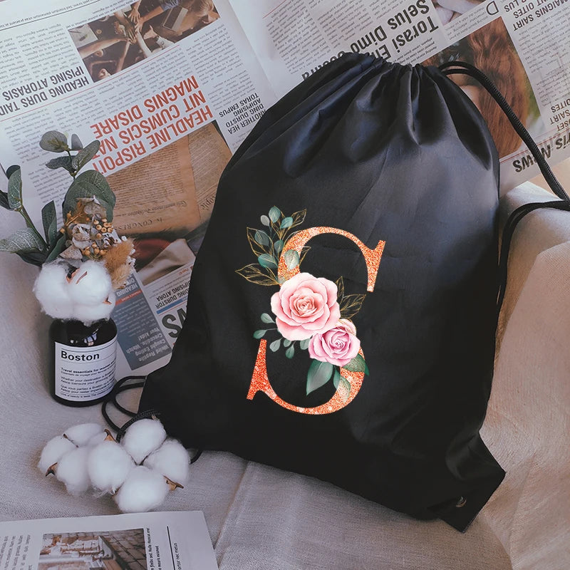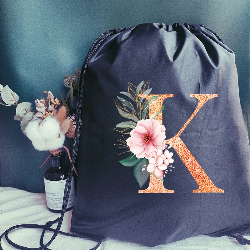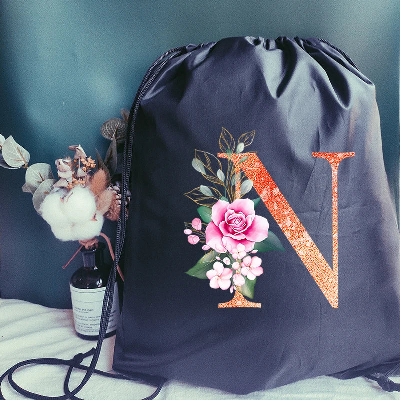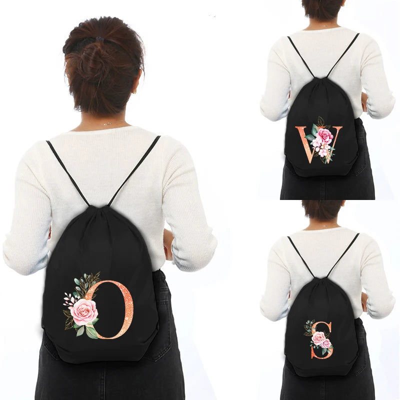 Stay stylish and organized with this orange sports bag featuring a letter print design. Perfect for carrying your gym essentials or shoes, this waterproof drawstring backpack is a versatile and convenient choice.