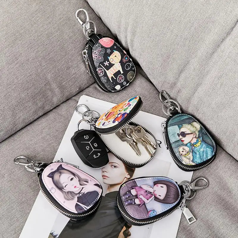 Oval Car Key Case Mini Storage Bag Unisex Key Bag Men Women