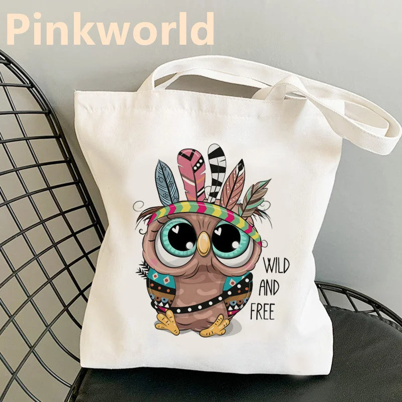 This Harajuku owl tops printed shopper bag is a stylish and spacious accessory for women.