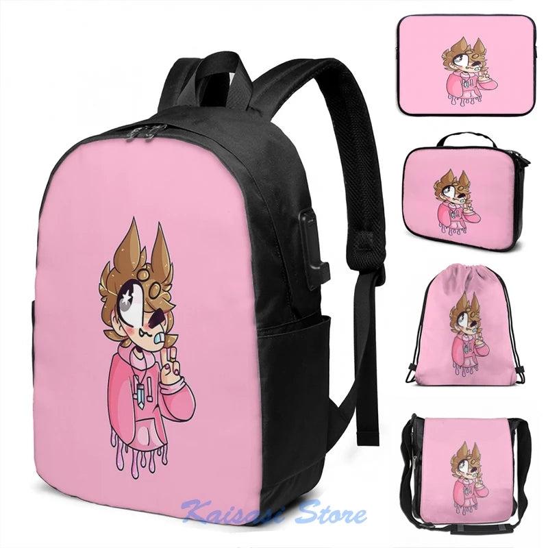 Pastel Tord Eddsworld USB Charge Backpack School Travel Laptop Bag