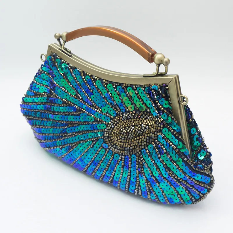 This beautiful handbag features peacock feather sequins, perfect for adding a touch of minority temperament to your outfit. It's a stylish and unique accessory that will make a statement.
