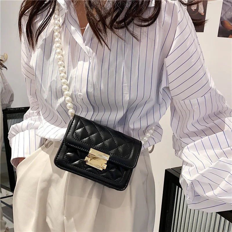 This stylish handbag is a high-level accessory that combines elegance and functionality. It features a classic design with pearl chain accents, making it perfect for any occasion.