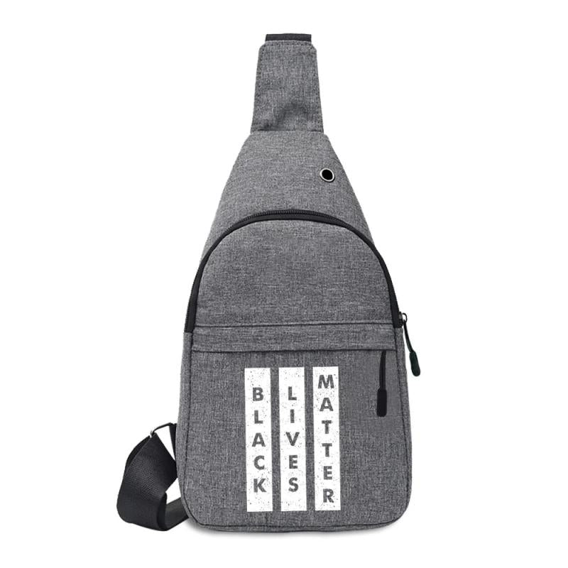 This stylish shoulder chest pack handbag is perfect for travel and carrying small essentials. It features a unique phrase print design.