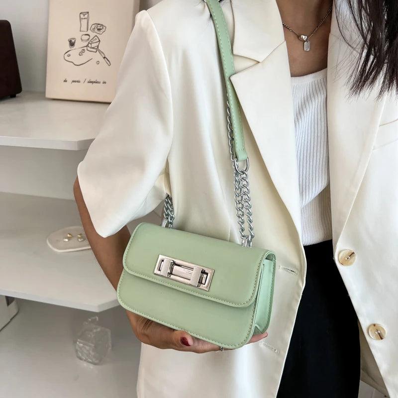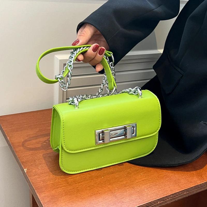 Elegant pink handbag made of high-quality leather with a stylish chain strap. This purse is perfect for women who want a versatile and fashionable accessory.