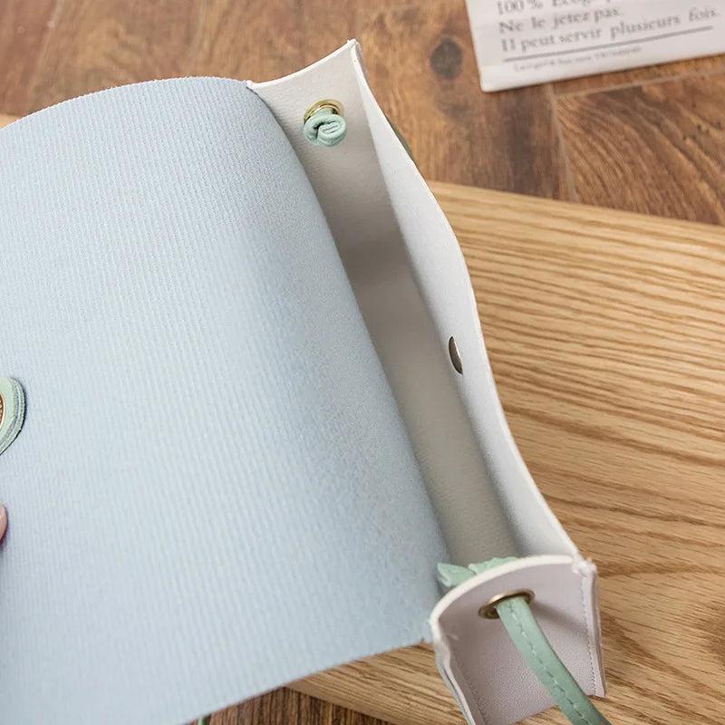 Stay stylish and organized with this elegant pink leather crossbody bag. Perfect for daily use or travel. Features a lovely pendant pearl detail.