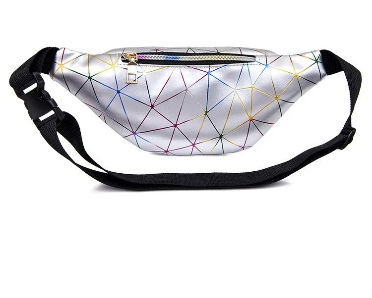 Pink Silver Geometric Fanny Pack Women's Belt Bag