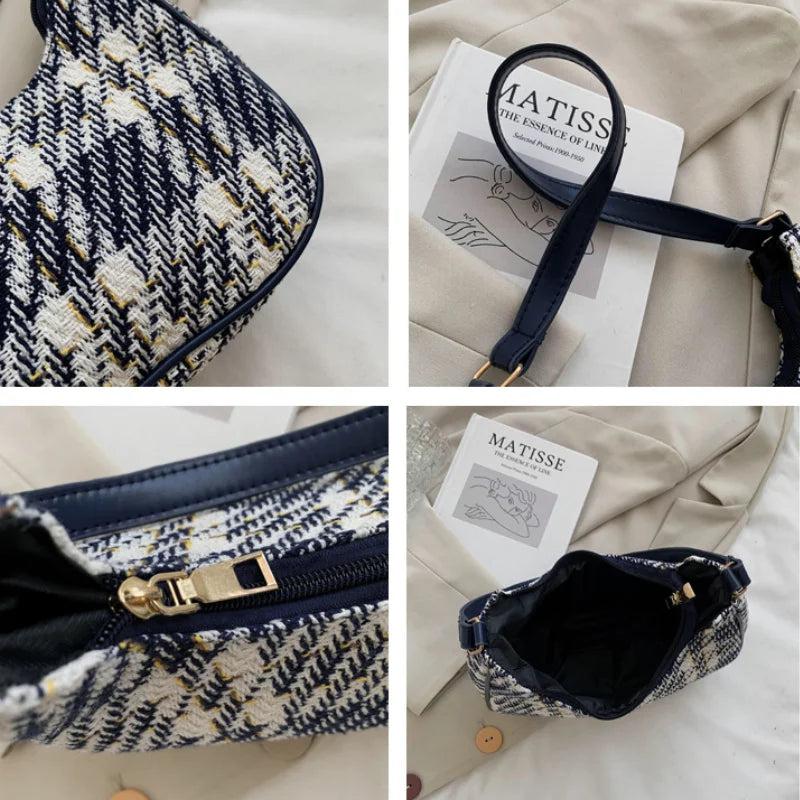 Stay stylish and on-trend with this plaid canvas shoulder bag designed for women. It's the perfect accessory for everyday use.