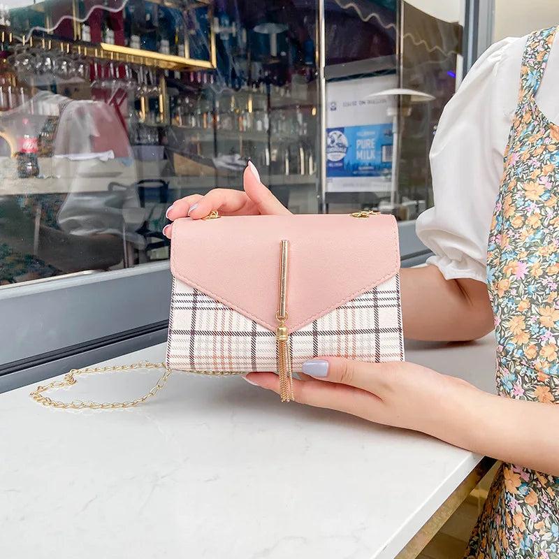 Elevate your style with this stylish plaid fringed handbag perfect for summer and autumn. Ideal for any occasion.