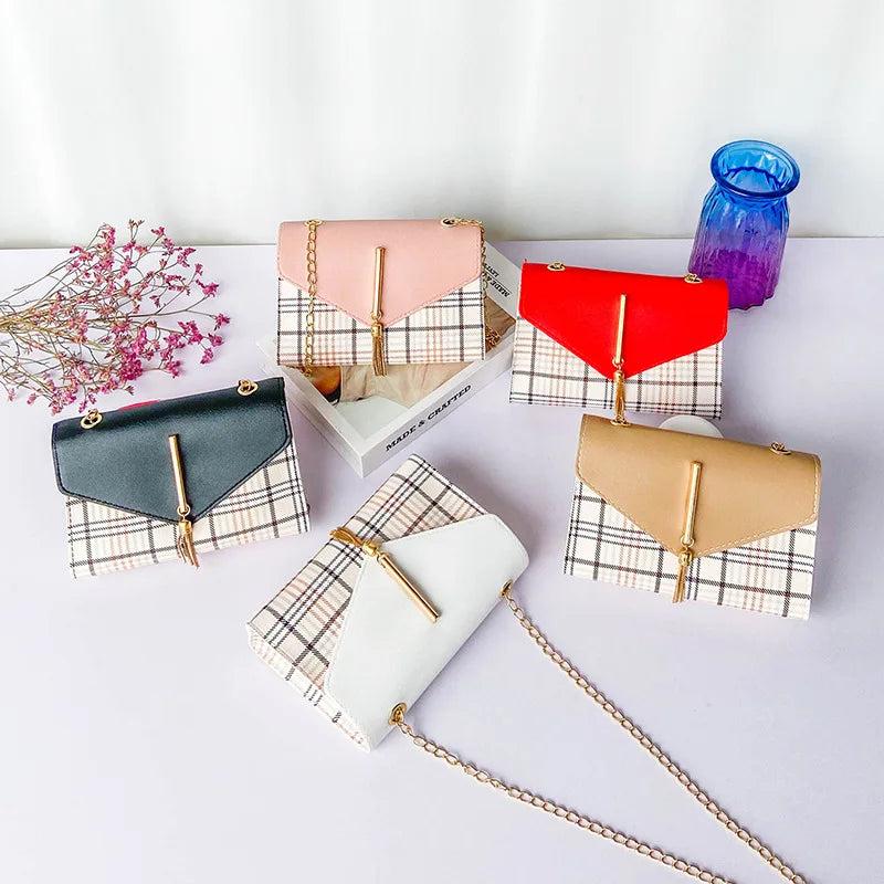 Plaid Fringed Handbags One-Shoulder Small Square Bags For Women