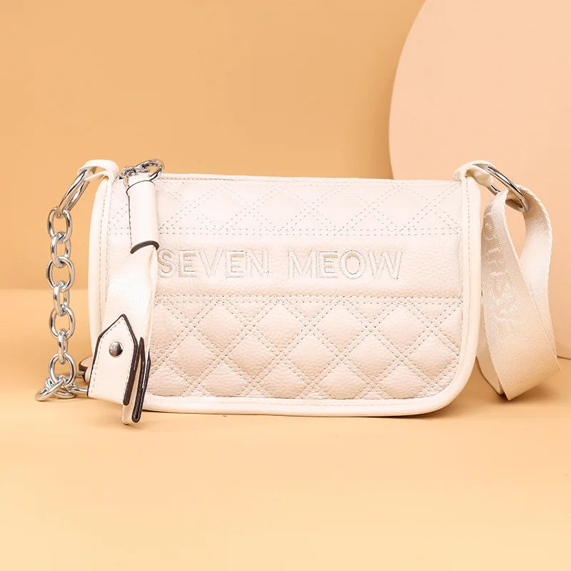 Stay stylish with this casual vintage tote chain handbag for women. Made of high-quality leather and features a plaid letter design. Perfect for everyday use or special occasions.