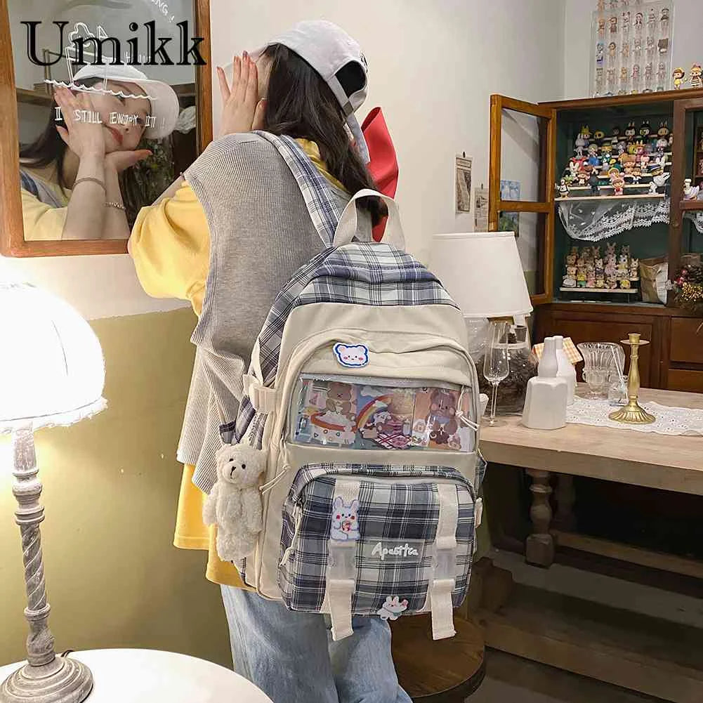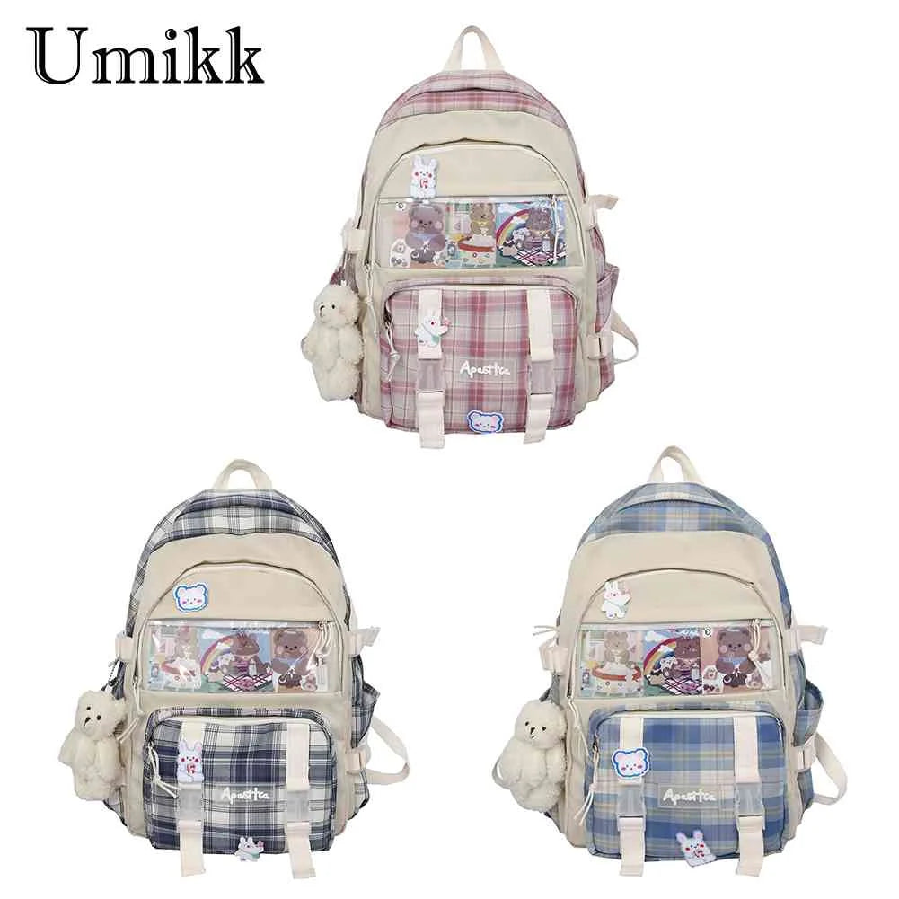Stay stylish and organized with this plaid print rucksack. Perfect for students and daily use.