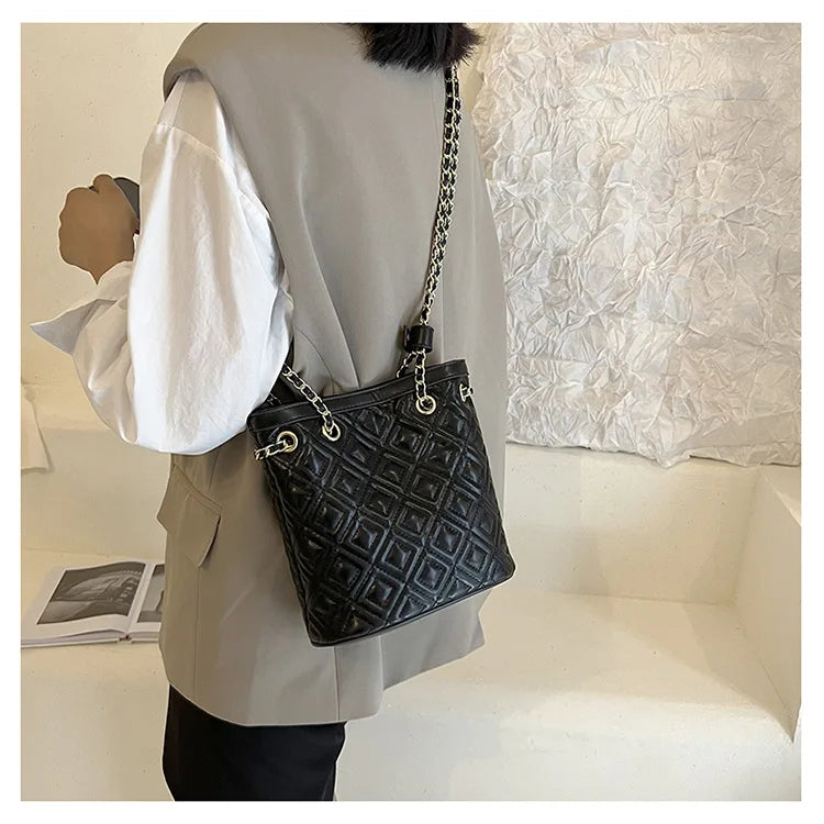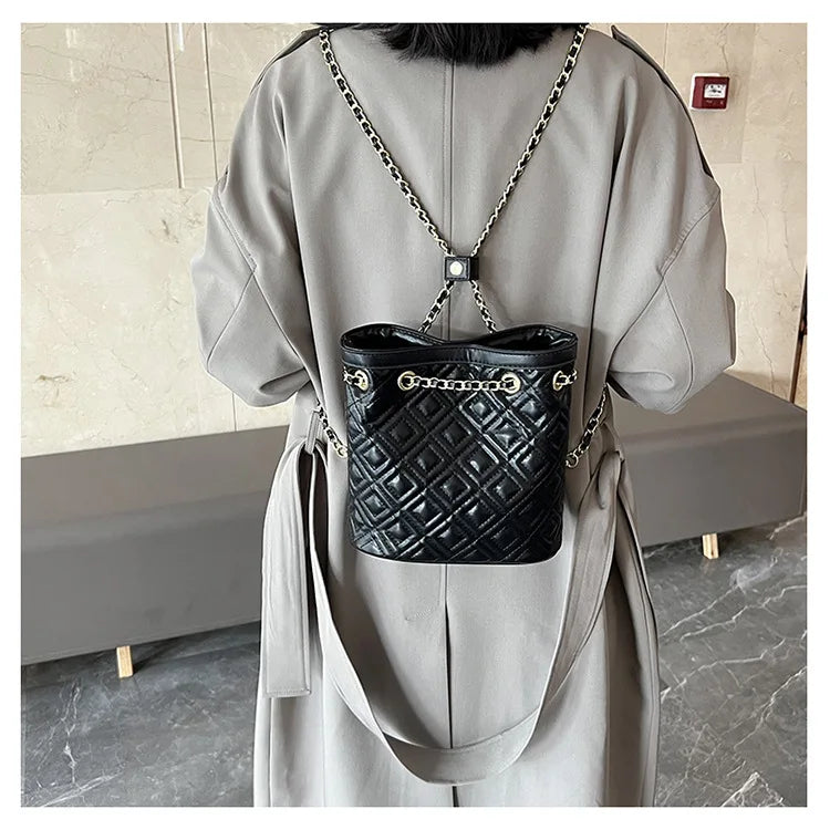 Plaid Quilted Women's Backpack Soft PU Chain School Bag Small Travel Bag