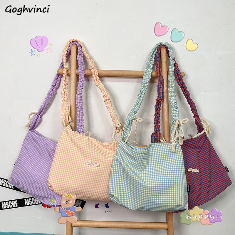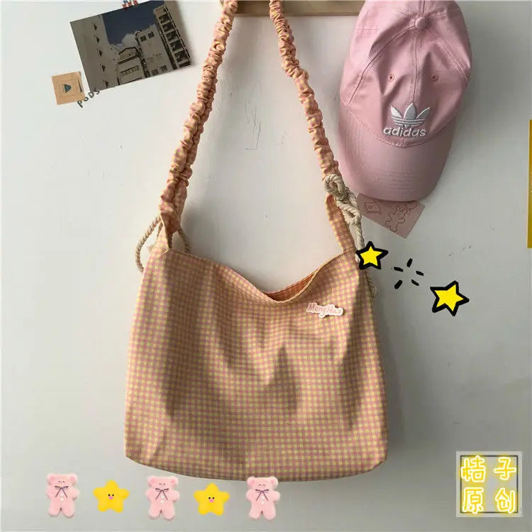 This sweet and stylish plaid shoulder bag is perfect for students with its preppy canvas design. The envelope shape and ruched detailing add a unique touch to your look.