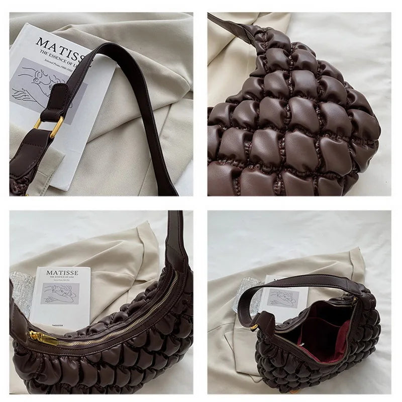 Stay on-trend with this retro plaid pleated shoulder bag made of high-quality PU leather. Perfect for everyday use, this underarm bag is both stylish and functional.