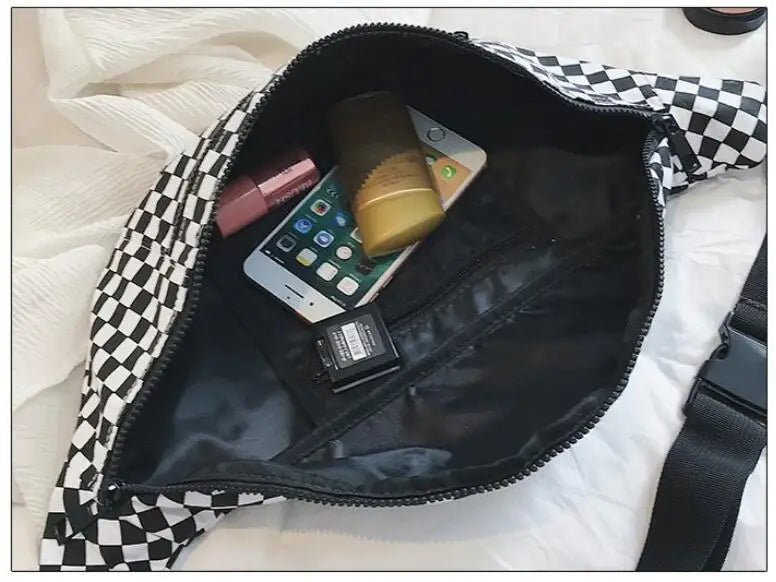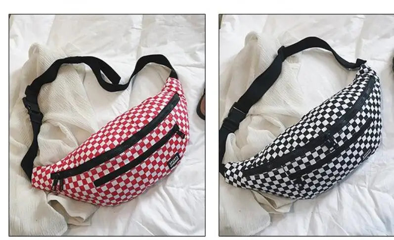 Plaid Waist Bag Unisex Leg Bag Fanny Pack Shoulder Belt Cellphone Bag